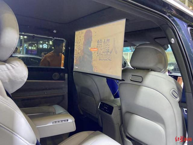 在车内躺平看投影电影是什么体验?展会现场,华为问界M9内部的升降屏、折叠座椅让SUV秒变“家庭影院”。