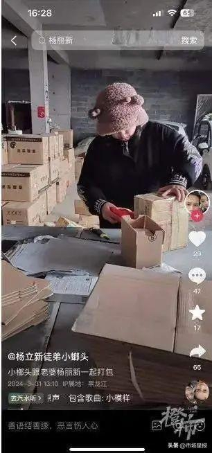 “小螂头”抖音ID名字称自己是“杨立新徒弟”,粉丝4400多,该账号短视频内容更新到3月31日,内容为小螂头和杨立新两人一起打包快递盒。