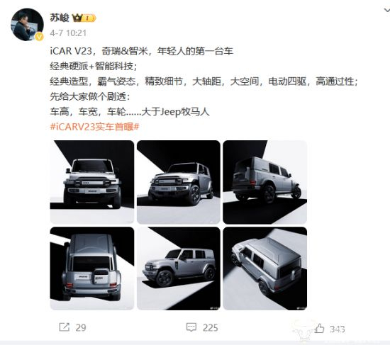 加之iCAR V23上市之后,智米科技创始人苏峻在个人账号宣传时公开表示:iCAR V23,奇瑞&智米,年轻人的第一台车。这样一来,就出现了小米与奇瑞造车的猜测。