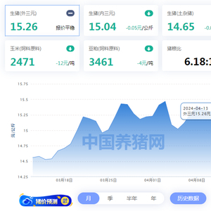 全国均价为15.26元/公斤,猪价较昨日上涨了0.00元/公斤,环比上涨4.81%,同比上涨6.12%;