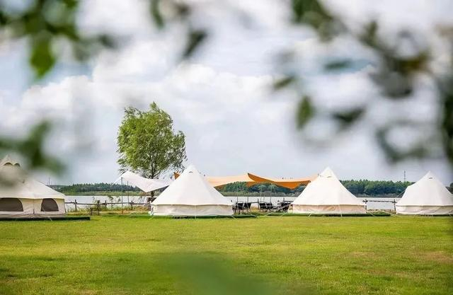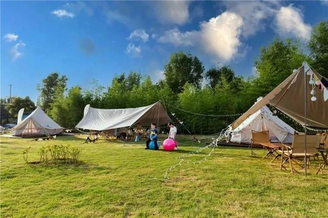 露营地位于中国农民画村,超大片草坪,一顶顶纯白色帐篷支在其中,是一处文艺又安静的小众露营地。