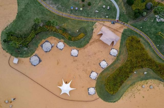 星辰大海营地位于金山城市沙滩内,拥有金黄的沙滩、蔚蓝的大海、醉人的海风。