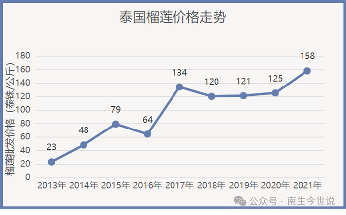 既然中国无法实现自主生产,以泰国为主的榴莲供应国疯狂拓展种植区域,并逐步抬升榴莲的销售价格,高端榴莲价格已飙升至每斤数百元,我们却只能高价买入。