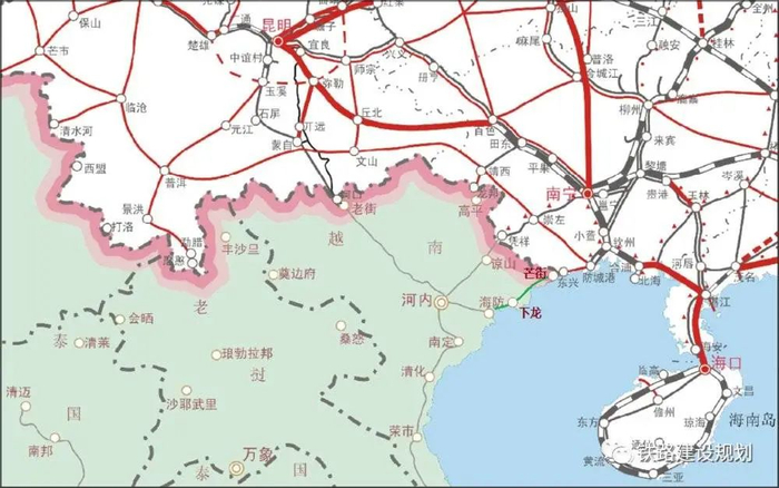 目前,国内高铁已经延伸到中越边境,边境共有三个重要的口岸城市:云南河口与越南老街毗邻,广西东兴与越南芒街相邻,广西凭祥与越南谅山相连。