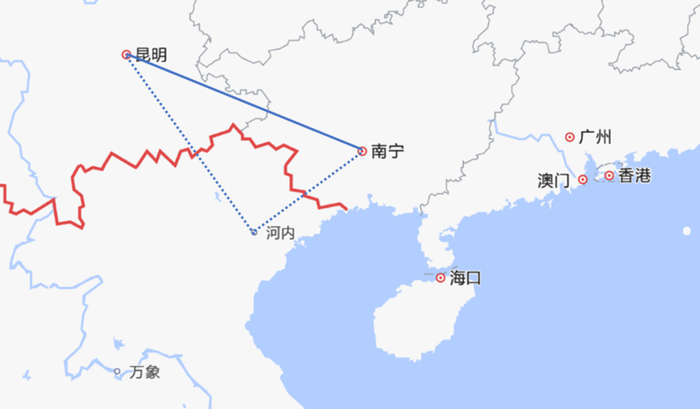 目前,昆明到河口、南宁到东兴的高铁已经开通,而南宁到凭祥的高铁将于明年开通。