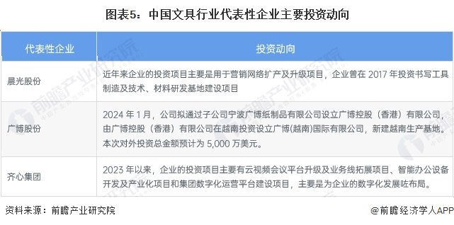 文具产业代表性企业主要投资动向