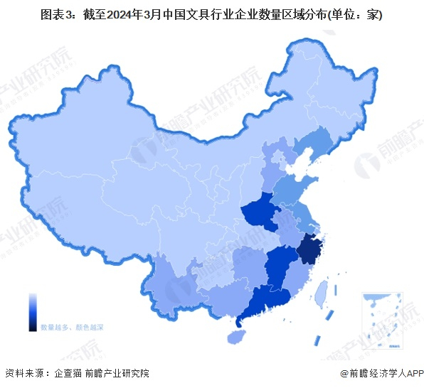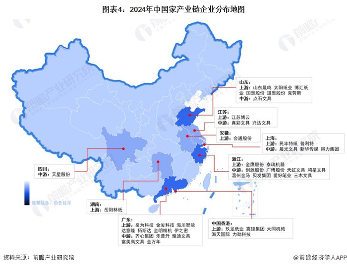 文具行业产业链区域热力地图:江苏省为主要聚集地