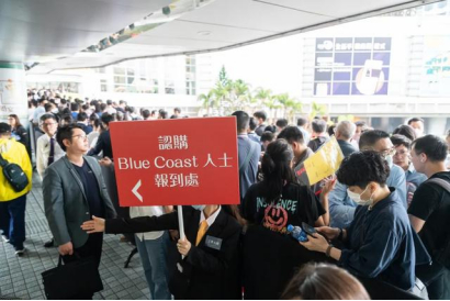 4月6日,李嘉诚的长实集团与钢铁公司合作开发的Blue Coast(蓝色海岸)房地产项目开盘。当天422套房源有28000组客人有意购买,平均一套房源有着66人认购,于是又是惊现现场“抽签”,房源12个小时售罄不说,中签率仅1.5%。