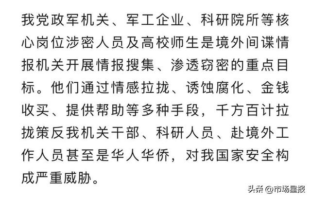 14日,国家安全部官方微信公众号推出4·15全民国家安全教育日重磅专题《创新引领·国安砺剑》上集,总结回顾总体国家安全观提出十年来,特别是党的二十大以来国家安全机关破获的十个重大间谍案件。通过这十大典型案例,起底境外间谍情报机关渗透、窃密、策反的各式卑劣手法,树牢人民群众的反间防谍意识,让间谍“无处遁形”。
