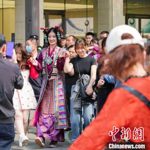 此次文旅推广活动中,主办方在西子湖畔举办了一场藏装时装秀,十多位拉萨市当雄县艺术团的演职人员身着各式藏装献上文艺表演、时装走秀,吸引广大游客驻足参与互动。