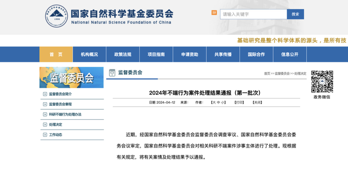 原标题:国家自然科学基金委发布2024年不端行为案件处理结果,涉江苏两高校