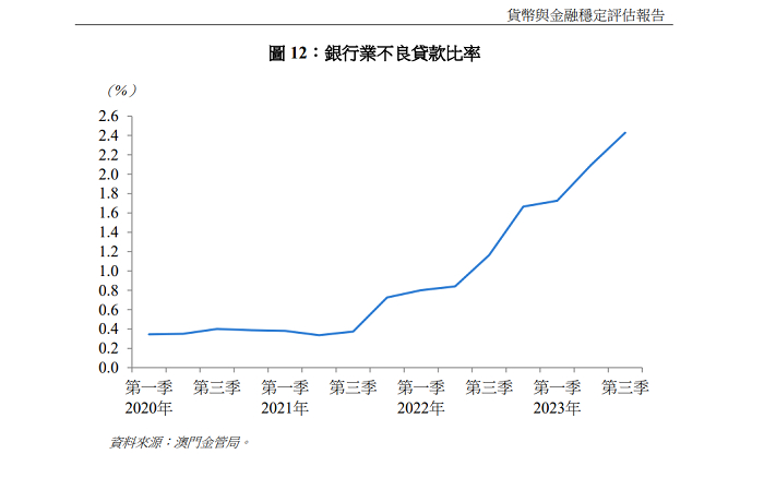 “澳门银行业的不良贷款率,从2021年底的0.37%,升至2024年1月份的3.82%,两年间增加10倍。2018-2019年买房的人群,首付款基本跌没了。继续下跌,可能导致负资产和大面积断供。”李宇嘉说道。