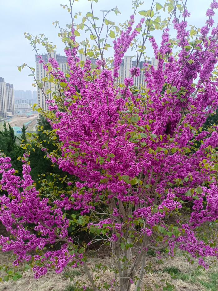 紫荆花喜肥沃、排水良好的土壤,不耐淹;萌蘖性强,耐修剪。春季开花,先花后叶,一簇数朵,花冠如蝶。最奇特处是其开花无固定部位,上至顶端,下至根枝,甚至在苍老的树干上也能开花,因而又有“满条红”的美称。