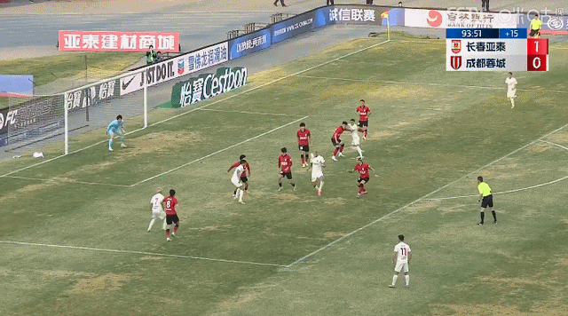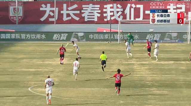 今天比赛第2分钟,成都蓉城打出反击,韦世豪杀入禁区射门被邹德海扑出。第12分钟,成都蓉城队长周定洋在中场被对手抢断,亚泰打出快速反击,吉列尔梅接谭龙左路传中包抄破门。
