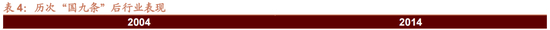 从市场表现来看,正如前文提到,前两次“国九条”出台后,都对后续市场表现起到了极大的提振作用。2004年“国九条”颁布后的两个月,市场迎来普涨。2014年“国九条”颁布后,2014年1月到2015年6月期间,A股市场经历了从结构牛到整体牛的演绎过程,迎来了继1999-2001年、2005-2007年后的又一轮大牛市。