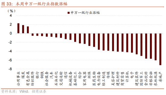 从行业上看,本周申万一级行业涨跌分化,公用事业、煤炭、有色金属涨幅居前,房地产、农林牧渔、非银金融跌幅居前。从涨跌原因看,本周领涨的行业及主要原因:公用事业(部分公司新披露业绩有所改善增强行业确定性),煤炭(焦煤期货价格大幅反弹),有色金属(有色金属期货价格全线上涨,金价持续刷新历史新高,银、铜、铝期货价格也均不同程度上涨);本周领跌的行业及主要原因:房地产(房地产数据持续低迷),农林牧渔(3月CPI数据不及预期),非银金融(证监会罚单频出,强监管力度凸显)。