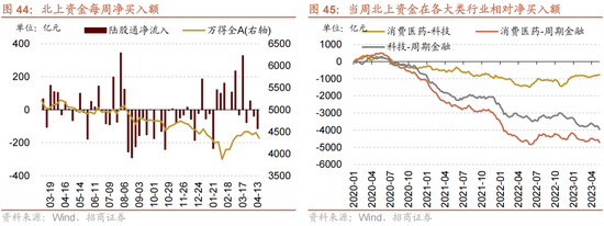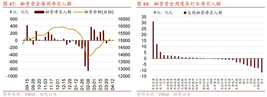 本周(4月8日-4月12日)北向资金净流出114.7亿元,净流出额扩大75.7亿元。行业偏好上,北上资金净买入规模较高的为有色金属、电子、电力设备等,分别净买入32.3亿元、15.5亿元、2.2亿元;集中卖出食品饮料、医药生物、计算机等,净卖出规模达-26.0亿元、-15.6亿元、-14.9亿元。