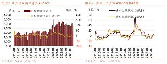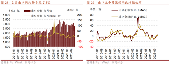 从3月主要行业出口数据来看,一方面,农产品出口降幅略有收窄,劳动密集型产品高基数背景下降幅普遍扩大,箱包出口同比转负至-27.7%,服装及衣着附件同比转负至-22.6%,玩具出口同比转负至-24.7%,家具出口同比转负至-12.3%。