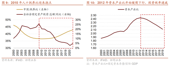 2014年左右,中国经济面临增长中枢下移,经济进入“新常态”。具体来看,中国的人口抚养比在2010年迎来了拐点;拐点后,投资增速不可避免的进入下行区间,叠加投资效率的下降,经济下行压力较大,经济增长中枢下移。根据我们计算,2012年开始,中国的资本产出比开始进入下行区间,投资效率递减。投资效率下降并不代表中国投资本身的效率问题,这一趋势与我国资本持续增长的状况相对应,符合经济发展规律。在这样的背景下,2014年中央政治局会议提出“我国进入经济发展新常态”,紧接着召开的中央经济工作会议再次提到“我国经济正在向形态更高级、分工更复杂、结构更合理的阶段演化,经济发展进入新常态”。
