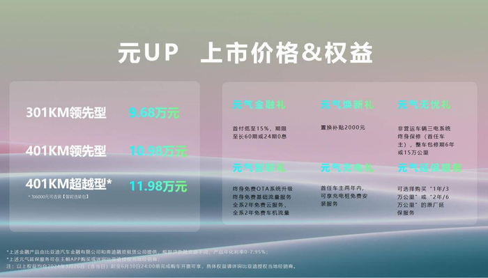 在发布会上,元UP的价格也正式公布。相比同级别车型,元UP的价格具有很高的竞争力。同时,为了回馈消费者的支持,元UP还推出了一系列的优惠政策。消费者在购买元UP时可以享受到优惠的价格和丰富的礼包,进一步提升了这款车的性价比。