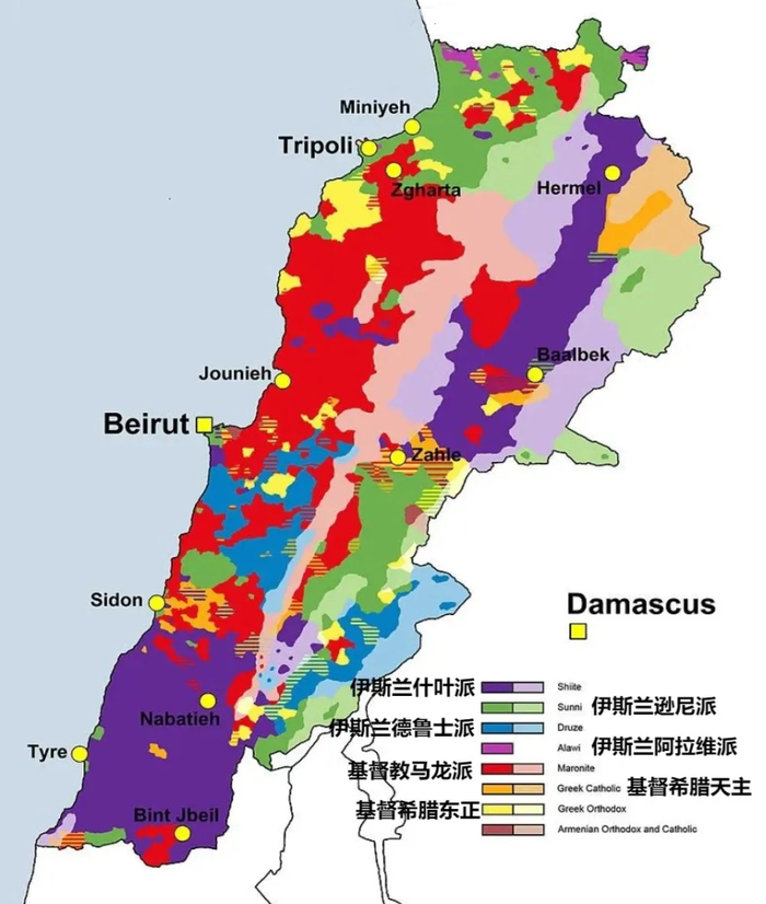 黎巴嫩宗教派系分布: