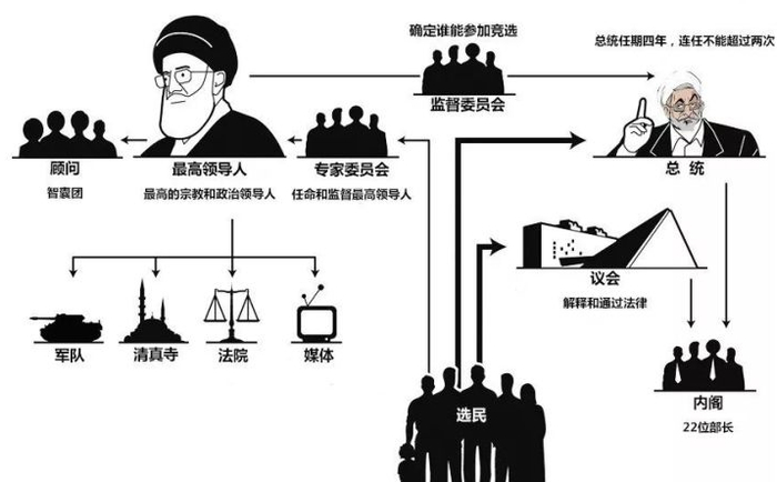 与以色列的情况类似,伊朗政局可谓波诡云谲。伊朗表面上是三权分立国家,有总统和议会,都由选举产生。但伊朗的权力掌握在宗教领袖、宪法监护委员会和专家委员会手中,内阁只是橡皮图章,只有执行权没有决策权。伊朗总统的权力,不仅取决于职务本身,更取决于宗教履历。比如平民出身的内贾德话语权明显不如教士家庭出身的莱希。事实上,伊朗的总统更大的作用是拿来背锅,宗教领袖必须维护光辉的形象,一切过错都可以推到总统身上。