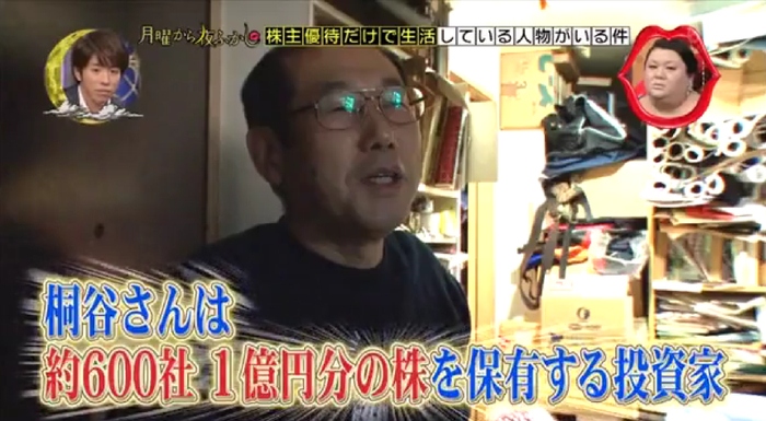 第一次拍摄是2013年1月,桐谷先生持有600多家日本公司的股票,市值1亿日元。