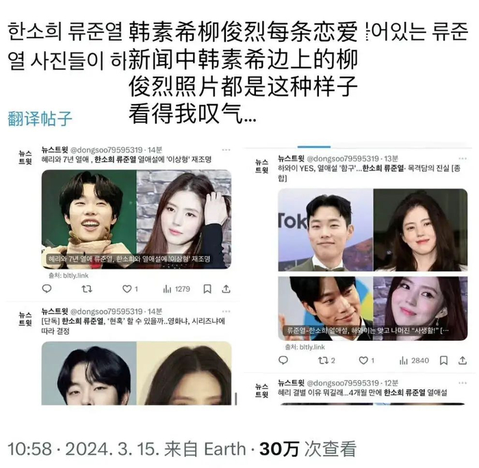韩素希和柳俊烈同游夏威夷被拍,韩国网友直接损出了性转版《蓝色海洋的传说》: