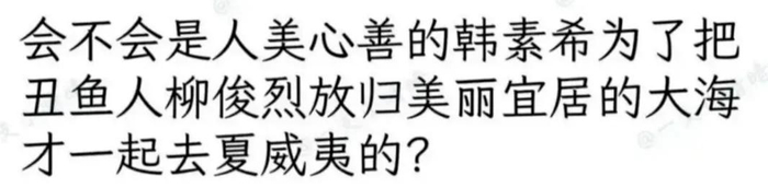 会不会是人美心善的韩素希为了把丑人鱼柳俊烈放归美丽宜居的大海才一起去夏威夷的?