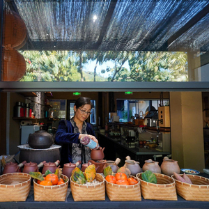 2023年11月2日,江苏苏州,工作人员在树山村的一家民宿内为游客制作茶饮。新华社 资料图