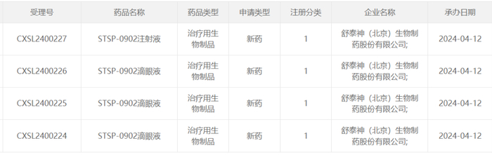 今日,STSP-0902的临床试验申请正式获得CDE受理,涉及注射液及滴眼液两种剂型。