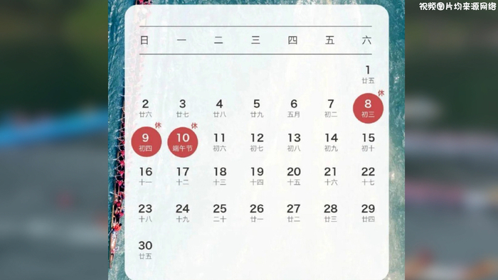 根据国务院办公厅通知端午节放假安排如下:6月10日(星期一)端午节当天放假,与周末相连,共3天,因此今年的端午节假期无需调休。端午节与春节、清明节、中秋节并称为中国四大传统节日,又称端阳节、龙舟节、重午节、重五节、天中节,有划龙舟、吃粽子、插艾蒿、挂香囊等习俗。