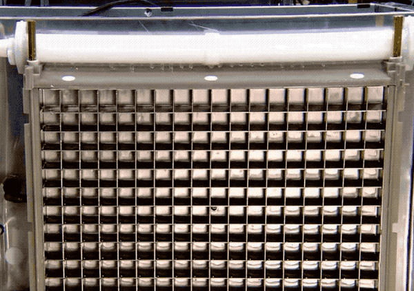 饮品店用的制冰机通常都是让水自上而下地流过立起来的“冰格”隔板,既保证了流水不停,又能让水在隔板上一层层凝结。在整个过程中,机器把水均匀地喷淋在隔板上,没有空气混入水流,制作出的冰块也就不会有气泡。而且,专业的制冰机温度可以低到-46.5℃,冻出来的冰块温度也更低,短时间内更不容易融化。