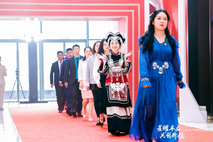 盛典现场铺置星光大道,明星们身着盛装走在红毯上,脸上洋溢着自信和喜悦,还有很多明星身着五彩斑斓的民族服装缤纷亮相。作为公司的精英人才,他们的到来为这场盛典增添了耀眼的星光。