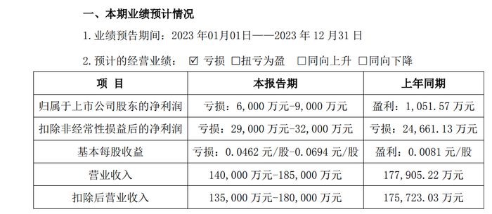 据海南海药2023年业绩预告,2023年海南海药归属于上市公司股东的净利润亏损6000万元至9000万元,上年同期盈利1051.57万元。