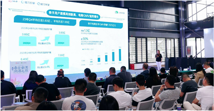 会上,快手官方团队带来平台流量形态及政策解读、商家成长与商业运营方法、用户生态洞察、常用工具介绍、商家赋能服务体系宣讲等内容,旨在推动新入局的商家实现从0到1的突破,帮助有一定经营能力的商家取得业绩上的冲刺,让更多茗茶产业带商家在快手实现转型与生意增长。