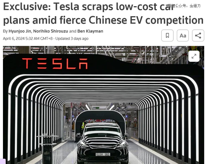 他们发了一篇文章,大概意思是说:特斯拉已经被中国比亚迪卷怕了,放弃了新车计划。