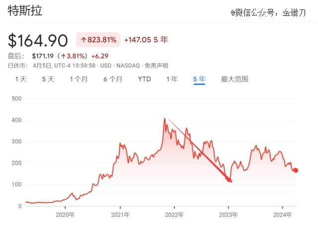 其次是股价自打开年以来已经断断续续下跌了30%左右,是特斯拉自打上市以来的跌得最惨一次;