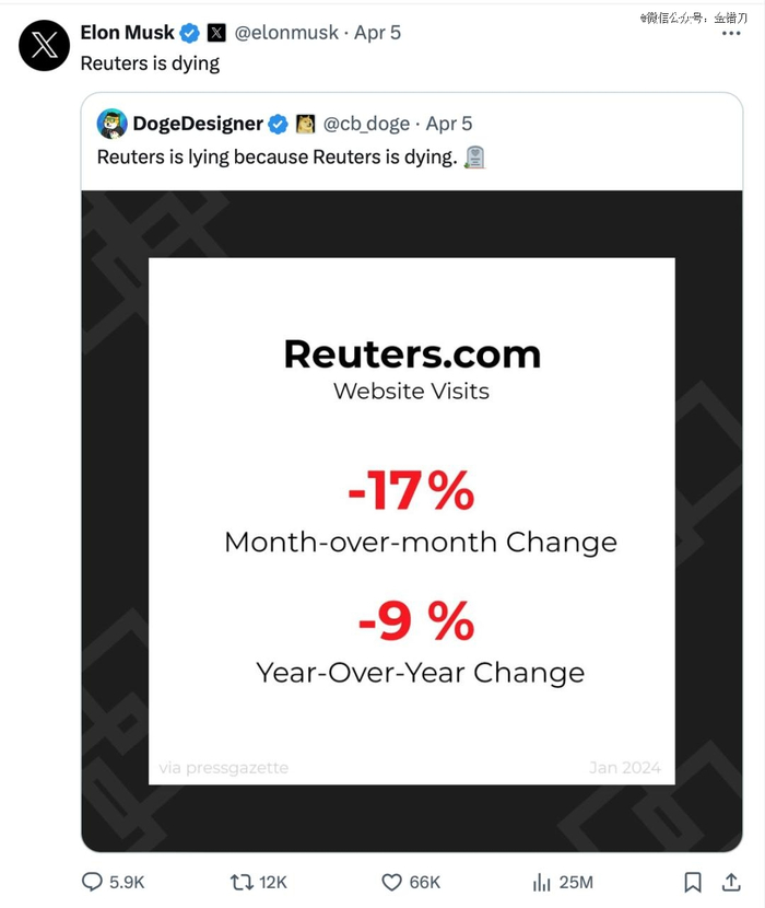 前脚刚怼完路透社,自知底气不足的马斯克,几小时后就发了另一条X(推特):