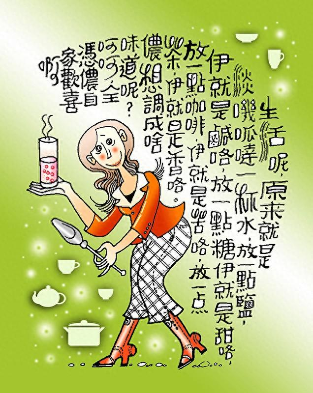 生活呢,原来就是淡叽呱嗒一杯水,放一点盐,伊就是咸咯;放一点糖,伊就是甜的;放一点咖啡,伊就是苦咯;放一点茶,伊就是香咯。侬想调成啥咪道呢?呵呵,全凭侬自己喜欢啊