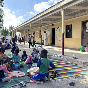 2024年1月3日,苏丹苏丹港,武装冲突持续,国内流离失所的苏丹公民迁移到东部,他们在学校建筑中避难,人道主义援助物资短缺。图源:人民视觉