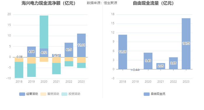 进一步统计发现,2023年公司自由现金流为16.75亿元,相比上年同期增长323.92%。