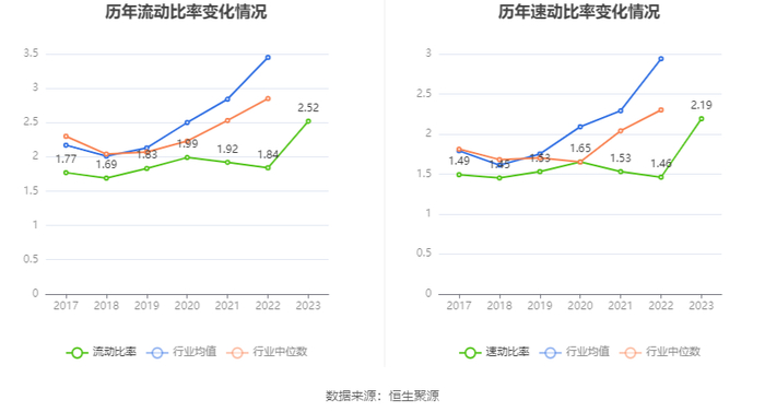 2023年,公司流动比率为2.52,速动比率为2.19。