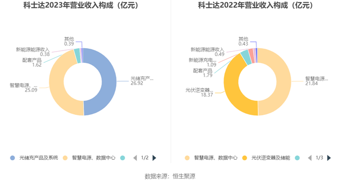 分产品看,光储充产品及系统、智慧电源、数据中心、配套产品2023年毛利率分别为26.49%、38.46%、32.77%。