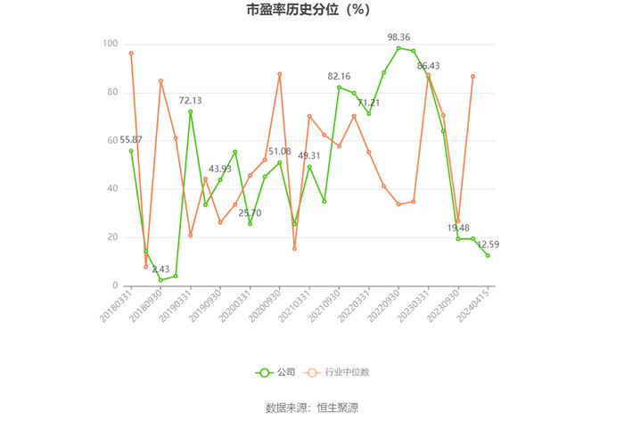市盈率为负时,不显示当期分位数,会导致折线图中断。