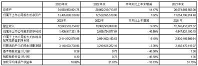 根据大华会计师事务所(特殊普通合伙)出具的标准无保留意见审计报告,报告期内,公司实现营业收入120.44亿元,归属于母公司的净利润14.10亿元,扣非归母净利润24.14亿元,加权平均净资产收益率10.88%,每股收益0.39元。报告期末,公司总资产340.94亿元,所有者权益179.31亿元,归属于母公司股东的所有者权益134.86亿元,归属于上市公司股东的每股净资产3.61元。