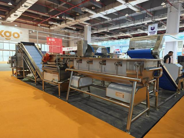 东莞市好助手食品机械有限公司生产的叶菜加工生产线,主要用于叶菜的切割、清洗、风干,共由6台设备组成,可以实现每小时1.5吨的产能,自动化率超过90%。