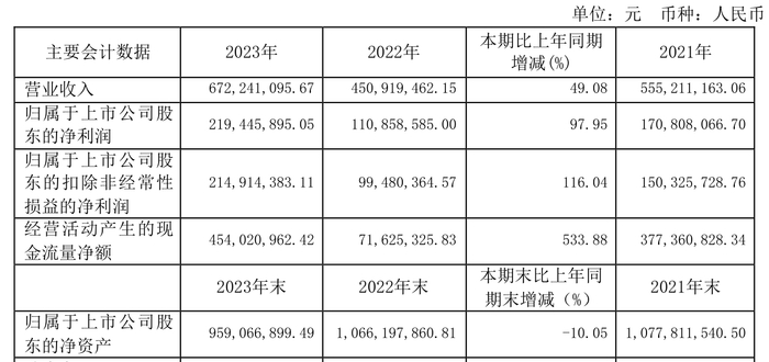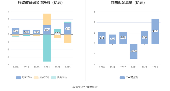 进一步统计发现,2023年公司自由现金流为4.69亿元,相比上年同期增长100.03%。
