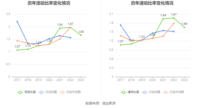 2023年,公司流动比率为1.66,速动比率为1.66。