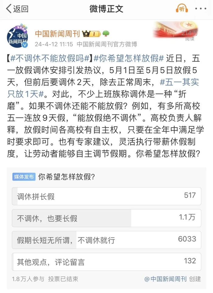 目前公众对于调休“凑假”模式